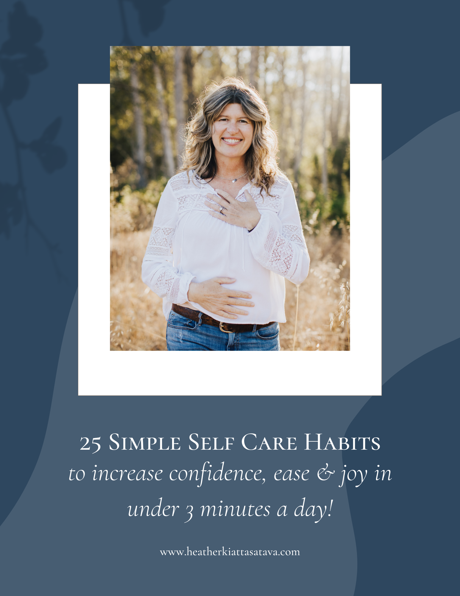 Often the best way to integrate new practices into daily routines is to start small. Sign up to receive 25 Simple Self Care Habits to Increase Confidence, Ease & Joy. Choose the self care option that you would like to try. Enjoy focusing on yourself for a few minutes each day and begin to feel more presence, peace and possibility as you create mini-moments to honor YOU.